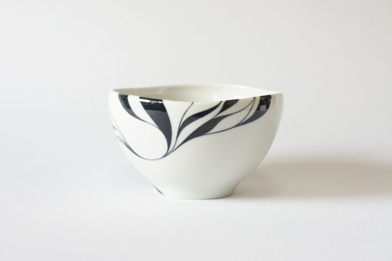 シンプルなモノトーン調の「Washo」シリーズの中で代表的なエチュード模様の茶碗です。