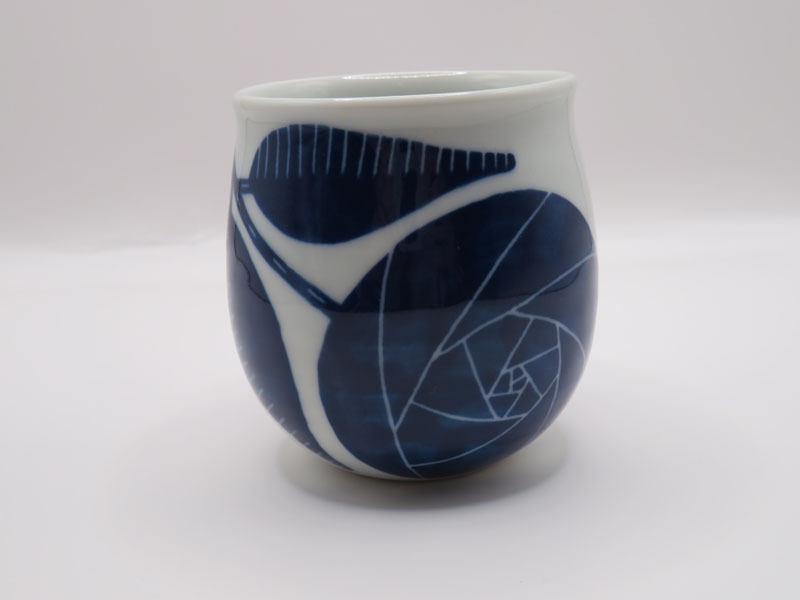 掻き落とし 花の湯呑(青)